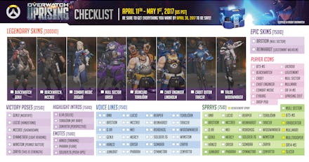 If you're looking to see everything you can get from the Uprising event in one place, Reddit user IzzePizze made a checklist with all the skins, icons, voice lines and more for ease of viewing.